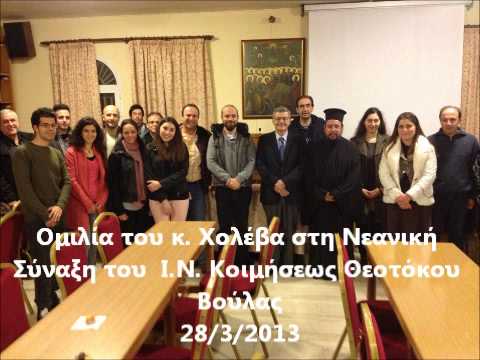 Την Πέμπτη 28 Μαρτίου 2013, πραγματοποιήθηκε ομιλία του κ. Κωνσταντίνου Χολέβα (Πολιτικός Επιστήμων, αρθρογράφος επί εθνικών και ιστορικών θεμάτων και συνεργάτης των ραδιοφωνικών σταθμών της Εκκλησίας της Ελλάδος και της Πειραϊκής Εκκλησίας) στη Νεανική Σύναξη του Ιερού Ναού Κοιμήσεως Θεοτόκου Βούλας, με θέμα: