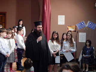 Την Κυριακή της Ορθοδοξίας, 20 Μαρτίου 2016, αμέσως μετά την πανηγυρική Θεία Λειτουργία του Μεγάλου Βασιλείου και την λιτάνευση των Ιερών Εικόνων, έγινε στην Κατακόμβη της Ενορίας Αγίων Κωνσταντίνου & Ελένης Ηλιουπόλεως η γιορτή των Κατηχητικών για την 25η Μαρτίου. Τιμήθηκαν με τον τρόπο αυτό τα δύο σπουδαία γεγονότα του Ευαγγελισμού της Θεοτόκου και της αγιασμένης Ελληνικής Επανάστασης, όπως την ονομάζει ο Φώτης Κόντογλου, με τον μοναδικό τρόπο, που γνωρίζουν τα παιδιά. Με αυθορμητισμό, συγκίνηση, παλμό και πάθος. Στην γιορτή συμμετείχαν παιδιά και από τα οκτώ τμήματα Κατηχητικών υπό τον συντονισμό της Άννας Σπύρου, η οποία είχε την γενική επιμέλεια της γιορτής με ποιήματα, τραγούδια και την μονόπρακτη θεατρική παράσταση «Ο Ματρόζος». Πολλοί ενορίτες και ενορίτισσες τίμησαν με την παρουσία τους την γιορτή, τους οποίους και θερμά ευχαριστούμε, όπως και όλους όσους αφανώς και αθόρυβα συνετέλεσαν για την προετοιμασία και την παρουσίασή της και, κυρίως, τους Κατηχητές, τις Κατηχήτριες και τα Στελέχη της Ενοριακής Νεανικής Εστίας.