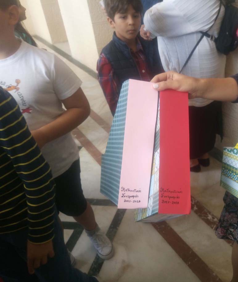 Δώρα φυσικά δεν πήρε μόνο η νικήτρια ομάδα, αλλά και κάθε παιδί πήρε για το γραφείο του ένα φάκελο ταξινόμησης εντύπων, που οι κατηχητές και κατηχήτριές μας και πάλι είχαν ετοιμάσει για τα παιδιά με την τεχνική του decoupage.
