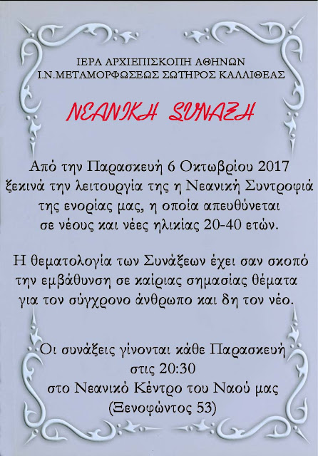 ![]() Ι.Ν.Μεταμορφώσεως Σωτήρος Καλλιθέας Ι.Αρχιεπισκοπή Αθηνών |