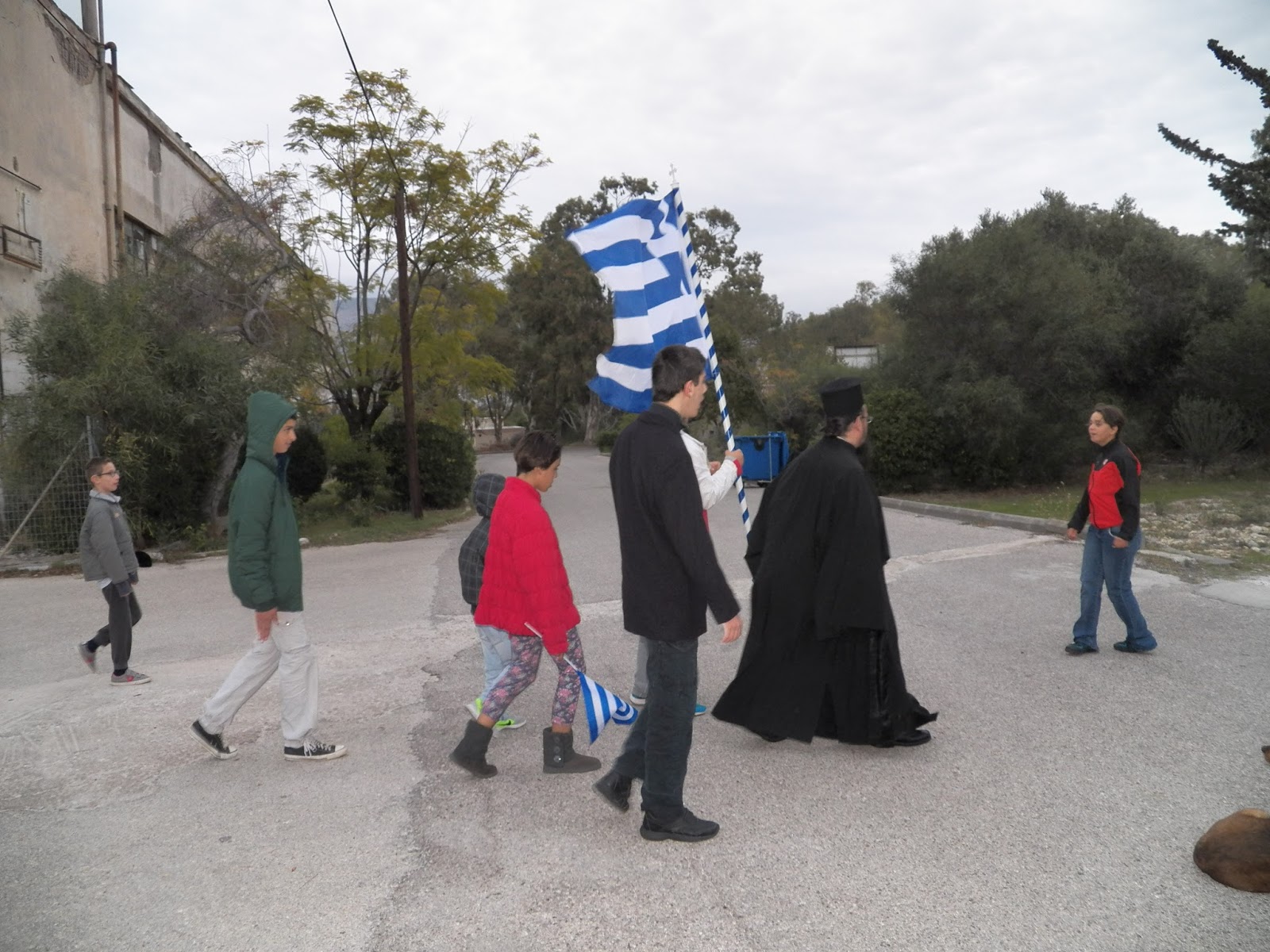 Στην γιορτή μας, μίλησε και ο πρωτοπρεσβύτερος Αθανάσιος Γιακουμάκης, ο οποίος συγκίνησε με τα λόγια του, αφού μοιράστηκε μαζί μας προσωπικές του αναμνήσεις από τον πόλεμο, όταν ήταν ακόμα παιδί. Ο εορτασμός έλαβε τέλος με τον Εθνικό Ύμνο, τον οποίο ψάλλαμε όλοι μαζί.